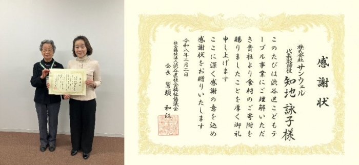 - お米の寄付活動に対して感謝状をいただきました